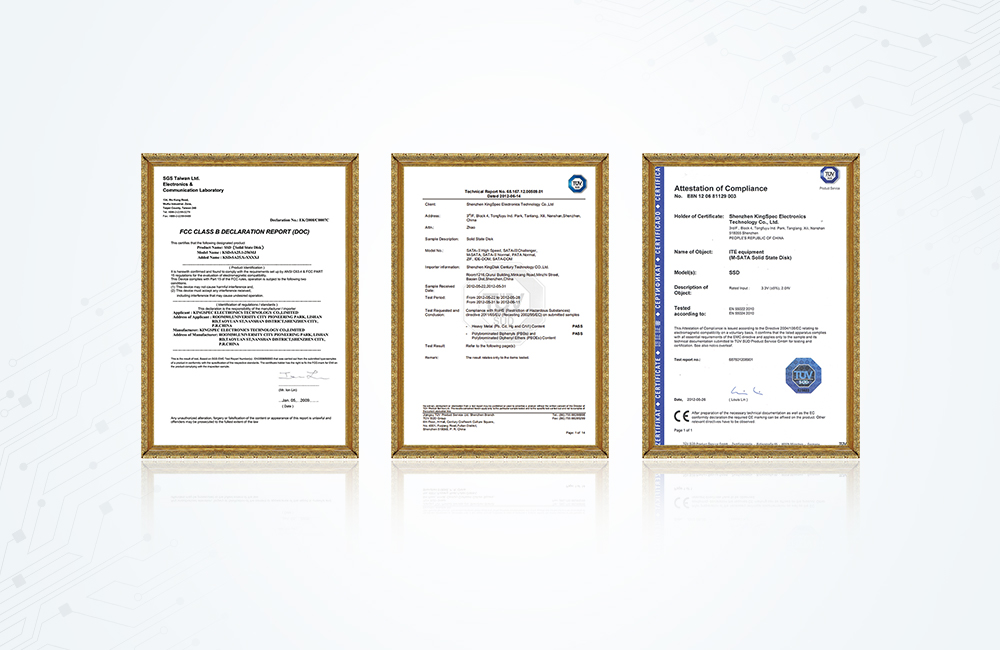 拓寬產(chǎn)品線(xiàn)PCIe、PATA、DOM、金勝維SATA系列產(chǎn)品通過(guò)CE、FCC、RoHS等權(quán)威認(rèn)證